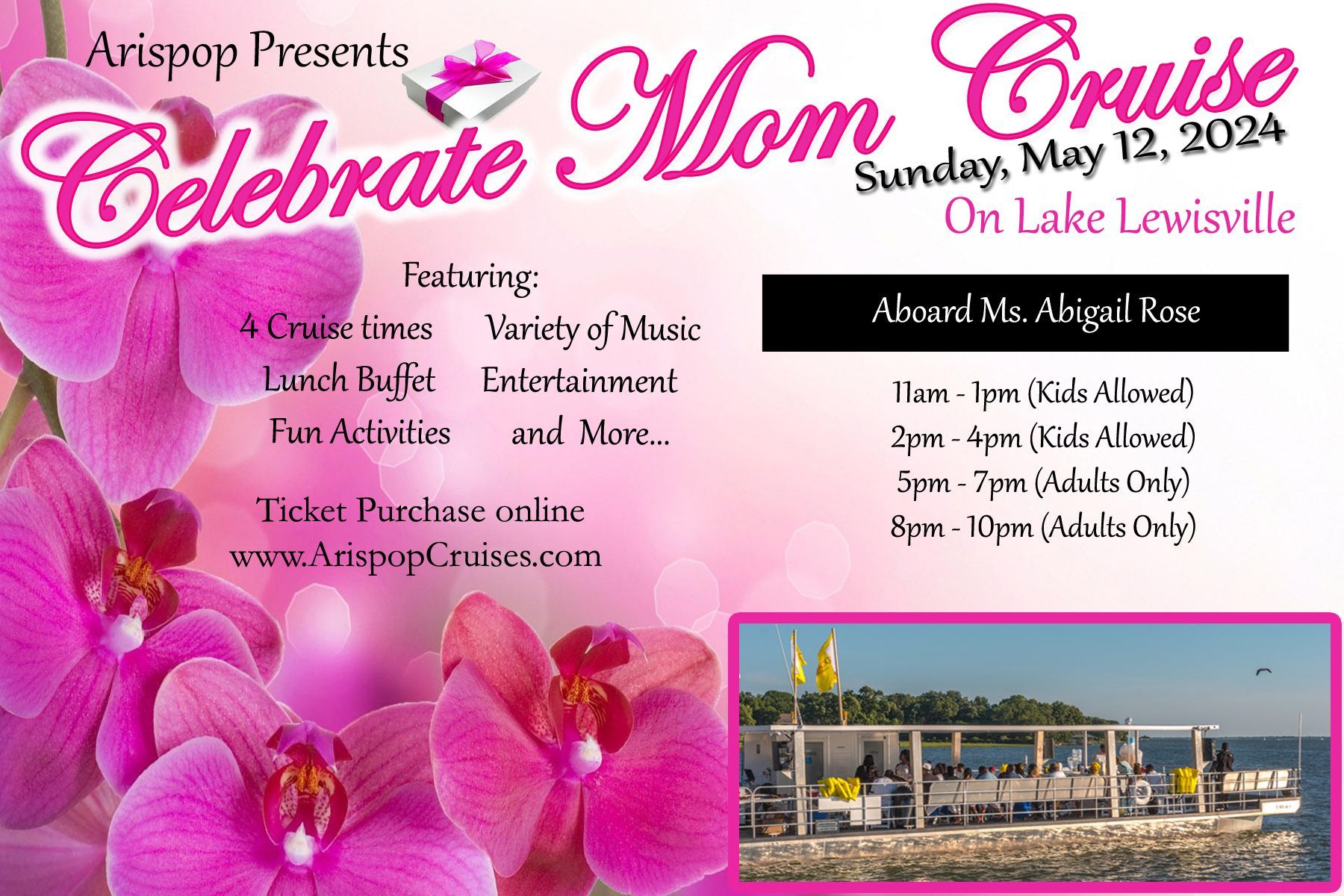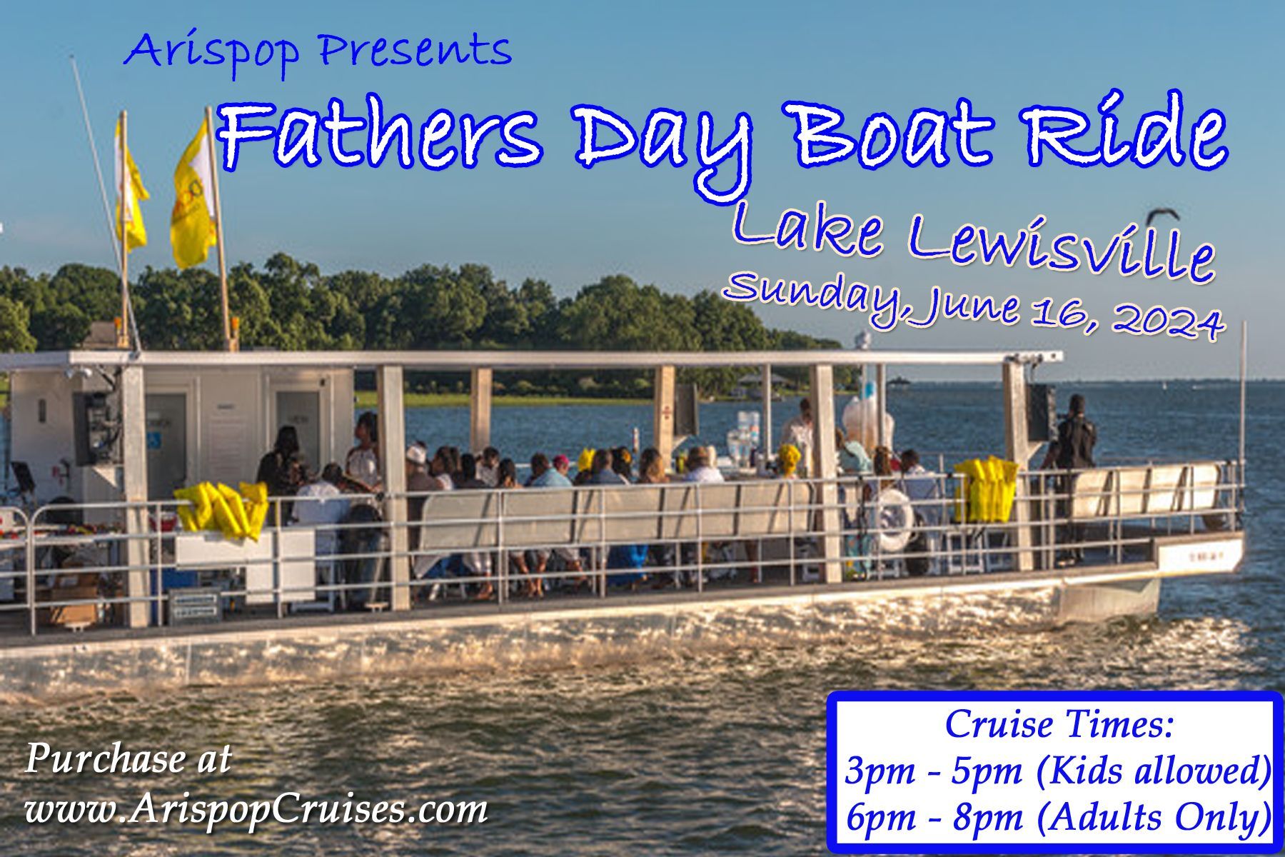 Unfortunately, Arispop will not be hosting a Father's Day Boat Ride this year. We apologize for any inconvenience and wish all the Fathers, A Happy Father's Day!